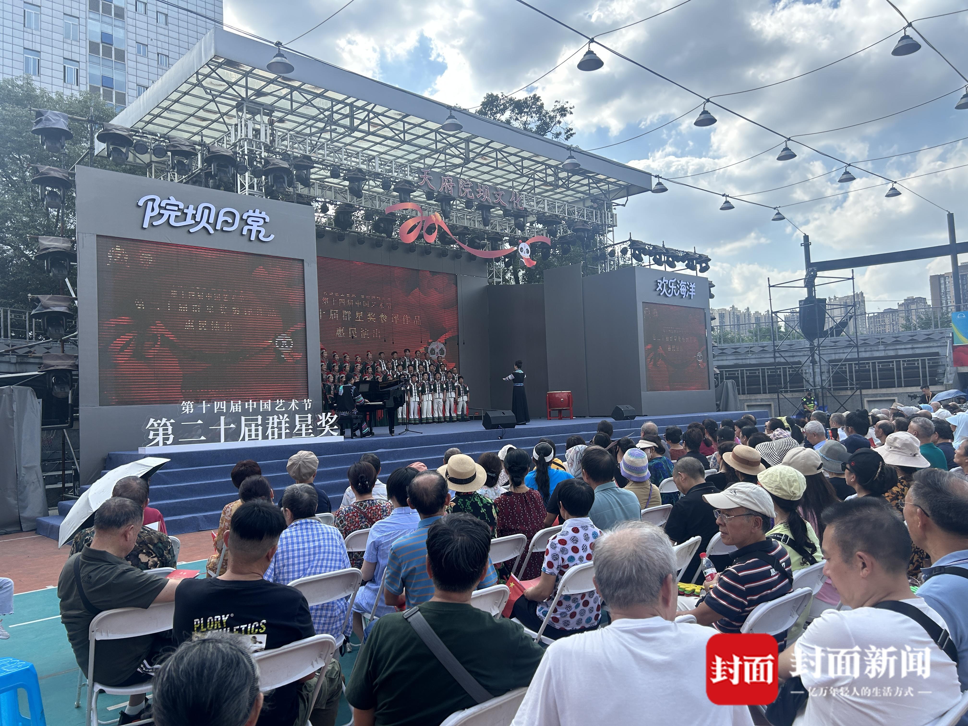 9月24日下午,第十四届中国艺术节第二十届群星奖参评作品惠民演出在成都市成华区二仙桥街道综合文化活动中心“院坝文化大本营”内举行。歌声嘹亮下,一场艺术的狂欢在此绽放。