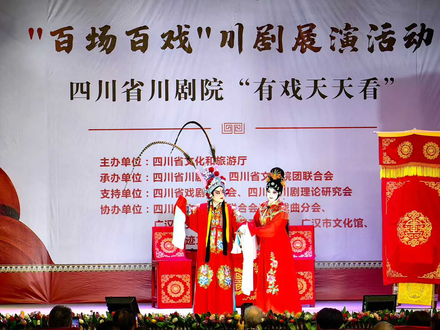 9月24日,2025年度四川省“百场百戏”川剧展演在广汉市高坪镇古玩城剧院举行启动仪式。即日起至10月3日,由省内民营剧团带来的川剧大幕戏、折子戏将一一上演。